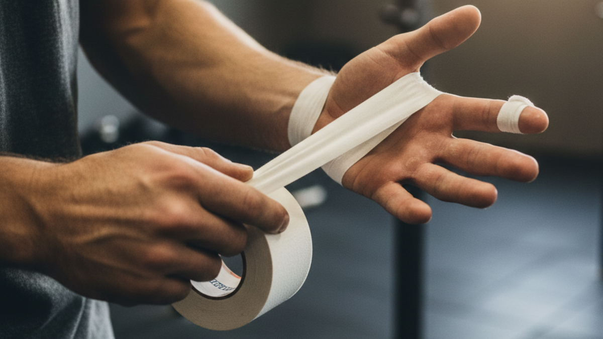 Voor gripbescherming wordt meestal sporttape gebruikt. Deze tape is stevig en slijtvast en blijft goed zitten tijdens intensieve workouts. Voor extra comfort of gevoelige huid kan sporttape gecombineerd worden met underwrap.